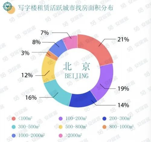 與上季度相比,各城市用戶對寫字樓租賃面積需求變化也有不同表現(xiàn),在寫字樓租賃活躍城市中,北京100㎡以下寫字樓搜索占比21%,較上季度提升1%,可見小面積寫字樓找房活躍度較高。而上海地區(qū)100㎡-200㎡寫字樓搜索量占比最高,同時1000-2000㎡和超過2000㎡的單位搜索占比各提升1%。廣州和深圳同樣是100㎡以下寫字樓搜索量占比最高,且廣州100㎡以下和800-1000㎡寫字樓搜索量占比各增加1%,深圳小面積單元100㎡以下搜索占比提升2%。