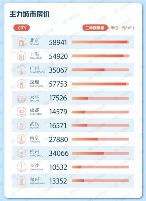 主力城市中,深圳新房線上均價為59079元/㎡,上海和北京分別為48161元/㎡和47169元/㎡,廣州為32991元/㎡。新一線城市中杭州和南京的新房線上均價分別為28022元/㎡、26637元/㎡。