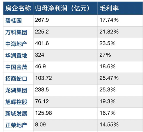 國(guó)金證券研報(bào)統(tǒng)計(jì)數(shù)據(jù)顯示,從3月以來(lái)房企發(fā)布的2021年業(yè)績(jī)公告看,平均毛利率為18.74%,平均凈利潤(rùn)率為8.21%。