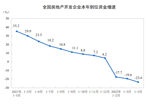 1—4月份,房地產開發(fā)企業(yè)到位資金48522億元,同比下降23.6%。其中,國內貸款6837億元,下降24.4%;利用外資38億元,增長129.4%;自籌資金16271億元,下降5.2%;定金及預收款15357億元,下降37.0%;個人按揭貸款8037億元,下降25.1%。
