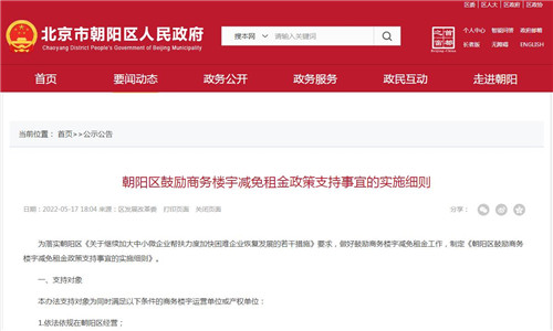 房訊網(wǎng)訊 為落實(shí)朝陽區(qū)《關(guān)于繼續(xù)加大中小微企業(yè)幫扶力度加快困難企業(yè)恢復(fù)發(fā)展的若干措施》要求,做好鼓勵商務(wù)樓宇減免租金工作,朝陽區(qū)發(fā)展改革委制定《朝陽區(qū)鼓勵商務(wù)樓宇減免租金政策支持事宜的實(shí)施細(xì)則》。