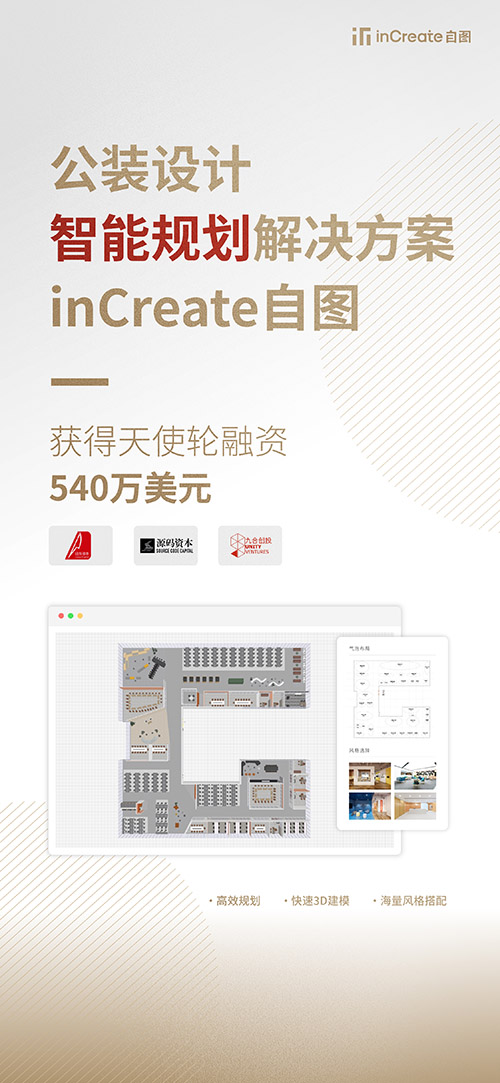 公裝設(shè)計(jì)智能規(guī)劃解決方案inCreate自圖,于今日宣布完成由線性資本領(lǐng)投、源碼資本和九合創(chuàng)投跟投的540萬美元天使輪融資。