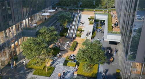 項目規(guī)劃有1.2平米商業(yè)配套,采用雙首層設置,并通過連廊與中海環(huán)宇薈連通,共同構成3.4萬平米商業(yè)中心,并匯聚餐飲、休閑、購物等多元業(yè)態(tài),營造上樓辦公樓棟悅活的都市辦公體驗。