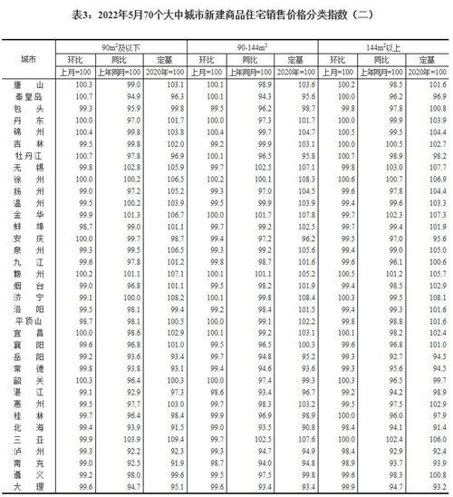 房訊網(wǎng)訊 6月16日,國家統(tǒng)計局發(fā)布2022年5月份70個大中城市商品住宅銷售價格變動情況。數(shù)據(jù)顯示,5月份,70個大中城市商品住宅銷售價格環(huán)比總體延續(xù)降勢,但降勢趨緩,新建商品住宅環(huán)比下降城市個數(shù)減少;一、二、三線城市商品住宅銷售價格同比漲幅均有回落或降幅擴大,同比下降城市個數(shù)增加。