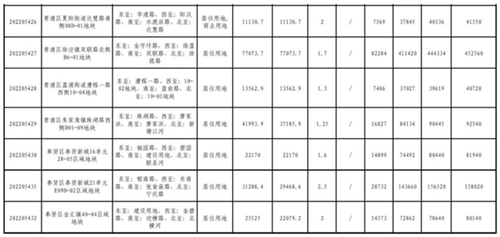 從土地價格來看,起始價最高的為楊浦區(qū)江浦社區(qū)R-05地塊,起始價約為47.71億元;緊隨其后的為浦東新區(qū)川沙新鎮(zhèn)城南社區(qū)PDP0-0706單元C06-03地塊,起始價約為43.58億元。從土地面積來看,面積最大的為青浦區(qū)徐涇鎮(zhèn)雙聯(lián)路北側B6-01地塊,土地面積約為7.71萬平方米;面積排在第二位的是嘉定區(qū)嘉定新城(馬陸鎮(zhèn))馬陸南社區(qū)JDC1-2301單元23-01、29-01地塊,土地面積約為7.35萬平方米。