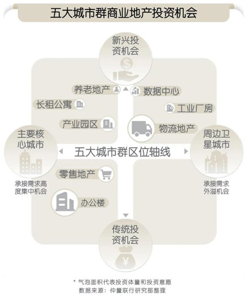 仲量聯(lián)行近日發(fā)布的《中國5強:從世界級城市到世界級城市群》白皮書認為,未來,五大城市群商業(yè)地產(chǎn)投資機會有望加速提升,各房地產(chǎn)物業(yè)類型將呈現(xiàn)多元化、多層次機會。前瞻性的城市群戰(zhàn)略布局將為企業(yè)和投資者帶來多元化收益。