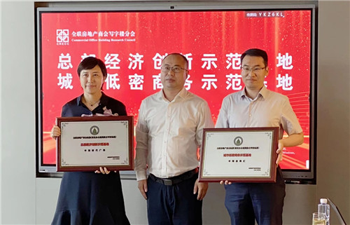 優(yōu)越的區(qū)域交通、科技的硬件配置、綠色的辦公環(huán)境,使得中海時(shí)代廣場和中海金海匯兩項(xiàng)目自入市之日起就備受市場關(guān)注,也獲得了市場的一致好評,因此,在本次活動(dòng)中,全聯(lián)房地產(chǎn)商會(huì)團(tuán)體標(biāo)準(zhǔn)《商業(yè)辦公建筑綜合評價(jià)標(biāo)準(zhǔn) 》商辦標(biāo)準(zhǔn)委員會(huì)特別授予了中海時(shí)代廣場“總部經(jīng)濟(jì)創(chuàng)新示范基地”、中!そ鸷R“城市低密商務(wù)示范基地”稱號并進(jìn)行了授牌儀式。
