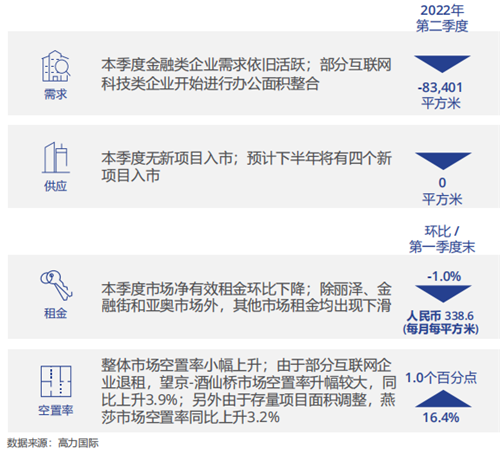 高力國(guó)際華北區(qū)董事總經(jīng)理嚴(yán)區(qū)海表示,數(shù)據(jù)顯示,北京甲級(jí)寫字樓市場(chǎng)的凈吸納量為-8.3萬(wàn)平方米,這是繼2020年一季度后第一次出現(xiàn)負(fù)值。二季度市場(chǎng)無(wú)新增供應(yīng),受到市場(chǎng)租賃活動(dòng)放緩、談判周期延長(zhǎng)等因素影響,整體空置率小幅回升到16.4%,市場(chǎng)租金也小幅回調(diào)至338.6元每月每平米。
