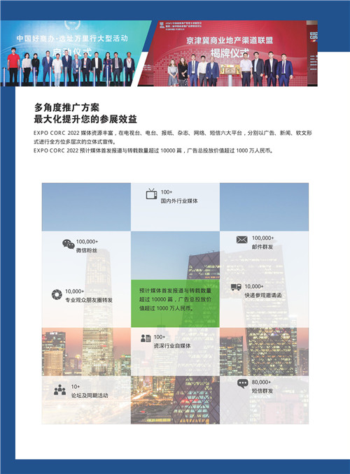 中國(guó)商業(yè)地產(chǎn)投資專業(yè)展覽會(huì)已連續(xù)成功舉辦十七屆,每一屆都得到了行業(yè)的矚目,成為全國(guó)優(yōu)秀商業(yè)辦公項(xiàng)目、產(chǎn)業(yè)園區(qū)及上下游企業(yè)的聚集地。2022中國(guó)商業(yè)地產(chǎn)投資專業(yè)展覽會(huì)(EXPO COSS 2021)將邀請(qǐng)100家企業(yè)和項(xiàng)目,1000家投資機(jī)構(gòu)和代理機(jī)構(gòu),1000家大中型企業(yè)和專業(yè)觀眾,為開(kāi)發(fā)商、運(yùn)營(yíng)商與大中型企業(yè)、代理公司、金融機(jī)構(gòu)、裝飾設(shè)計(jì)、產(chǎn)業(yè)鏈條提供品牌展示、招商對(duì)接、洽談交易的大型優(yōu)質(zhì)平臺(tái)。
