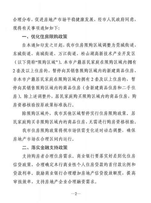 房訊網(wǎng)訊 7月4日,東莞市住房和城鄉(xiāng)建設(shè)局等四部門聯(lián)合發(fā)出《關(guān)于加強(qiáng)分類指導(dǎo)優(yōu)化住房限購政策的通知》(以下簡稱“通知”),將東莞市住房限購區(qū)域調(diào)整為莞城街道、東城街道、南城街道、萬江街道、松山湖高新技術(shù)產(chǎn)業(yè)開發(fā)區(qū),標(biāo)志著我市房地產(chǎn)市場調(diào)控進(jìn)入?yún)^(qū)域限購的新階段。