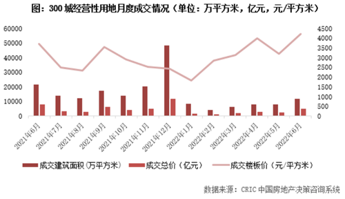 克而瑞數(shù)據(jù)則顯示,上半年全國(guó)300城經(jīng)營(yíng)性土地成交建筑面積為4.1億平方米,較2021年同期下跌55%。