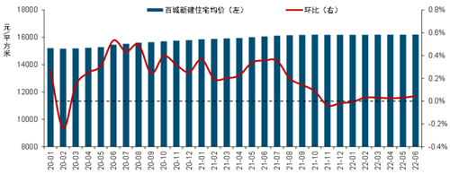 2020年1月至2022年6月百城新建住宅均價(jià)及環(huán)比變化,中指研究院制表