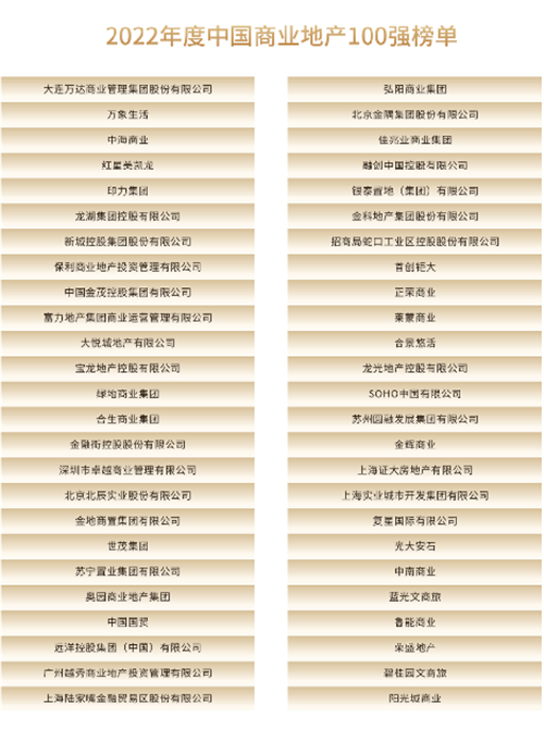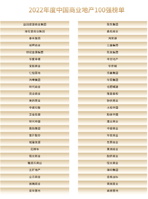 附一、2022年中國(guó)商業(yè)地產(chǎn)100強(qiáng)榜單
