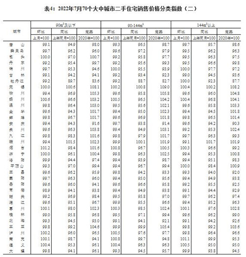 房訊網(wǎng)訊 8月15日,國家統(tǒng)計局發(fā)布2022年7月份70個大中城市商品住宅銷售價格變動情況。國家統(tǒng)計局城市司首席統(tǒng)計師繩國慶解讀數(shù)據(jù)表示,7月份,70個大中城市中商品住宅銷售價格下降城市個數(shù)略增。