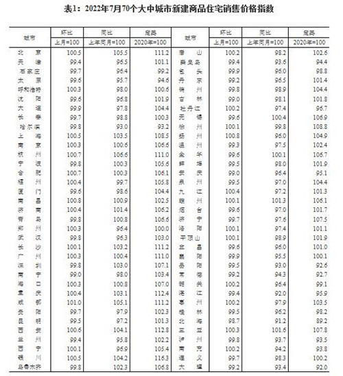 房訊網(wǎng)訊 2022年7月份,70個大中城市中商品住宅銷售價格下降城市個數(shù)略增。一線城市商品住宅銷售價格環(huán)比微漲、同比漲幅回落,二三線城市環(huán)比整體呈降勢、同比降幅擴(kuò)大。