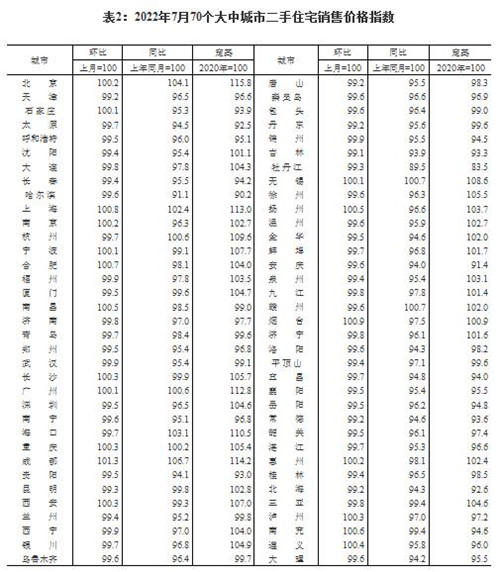7月份,70個大中城市中,新建商品住宅和二手住宅銷售價格環(huán)比下降城市分別有40個和51個,比上月分別增加2個和3個。