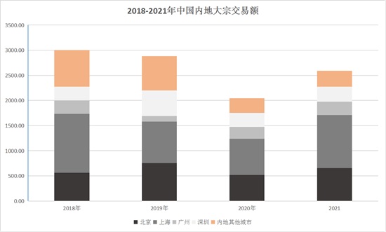 疫情沖擊下北京大宗成交有所滯后,大宗交易成交額約100億元,低于歷史同期水平,市場(chǎng)較大體量成交放緩,內(nèi)資買(mǎi)家包攬了所有大宗成交,其中自用買(mǎi)家交易宗數(shù)占比逾四成,保持活躍。廣州和深圳大宗交易額均在百億以?xún)?nèi),與往年同期保持平穩(wěn)。
