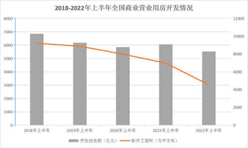 從商業(yè)營業(yè)用房來看,國家統(tǒng)計(jì)局?jǐn)?shù)據(jù)顯示,前6個(gè)月全國商業(yè)營業(yè)用房開發(fā)投資5528億元,同比下降8.7%;較受疫情影響的第一年即2020年同期也有下降,降幅為5.5%?梢钥闯觯词古懦咔橐蛩,房地產(chǎn)整體行業(yè)的下行依舊給商業(yè)地產(chǎn)帶來了一定的負(fù)面影響,這與企業(yè)融資端收緊、面臨較大的資金壓力有直接關(guān)系。