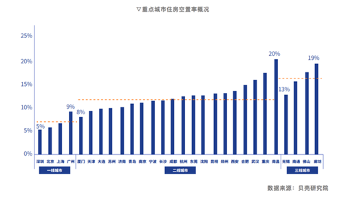 此次貝殼研究院統(tǒng)計發(fā)現(xiàn),我國28個大中城市平均住房空置率為12%,相對處于較高區(qū)間。