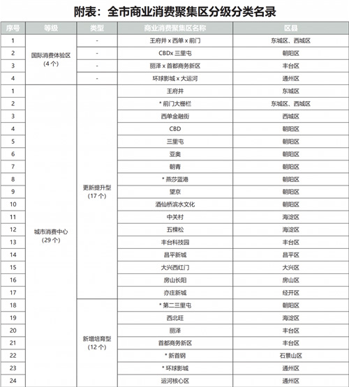 《專項(xiàng)規(guī)劃》提出,構(gòu)建80個(gè)地區(qū)活力消費(fèi)圈,包括36個(gè)更新提升型和44個(gè)新增培育型,將地區(qū)活力消費(fèi)圈建設(shè)成為服務(wù)承載多樣生活場景的地區(qū)宜居綜合體。具體包括五道口、崇文門、太陽宮、祥云小鎮(zhèn)等。