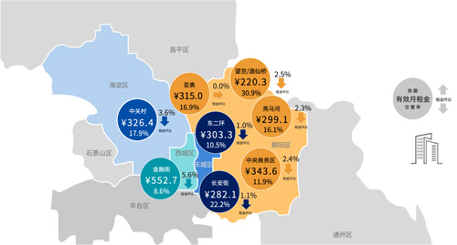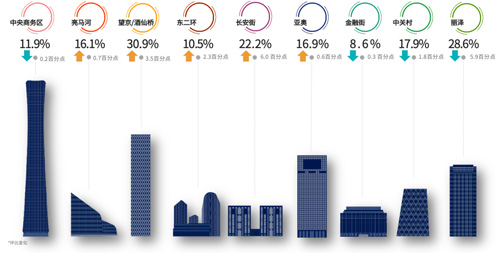 第四季度將有中關(guān)村麗金置地中心入市,給中關(guān)村的實力企業(yè)帶來升級換代的項目機遇;除此之外,上地、望京、亞奧、麗澤商圈均有新項目四季度,市場供應(yīng)將以城市更新項目為主,帶來超過50萬平方米的辦公面積。和第三季度新入市項目不同,相比而言這些項目預(yù)租情況表現(xiàn)一般,所以無法引發(fā)有效的凈吸納將進一步拉升空置率,將極有可能導(dǎo)致第四季度的空置率再次拉升。