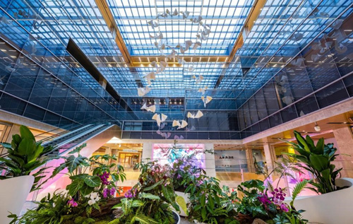 最終,歷經(jīng)藝術(shù)策劃、概念設(shè)計、設(shè)計開發(fā)、制作和安裝等全程的通力共創(chuàng),26只「金翼飛鳥」在近30米挑高陽光中庭翩然組隊,振翅「成雙」。