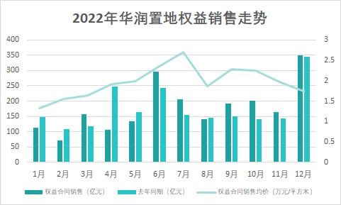 2022年12月,得益于年底銷(xiāo)售結(jié)算及下半年采取的積極清貨策略,華潤(rùn)置地權(quán)益銷(xiāo)售環(huán)比增加111.65%。