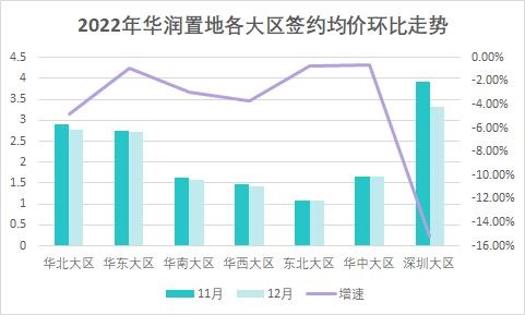 2022年底的搶收行為,使得華潤(rùn)置地各大區(qū)簽約均價(jià)環(huán)比均有所下滑。