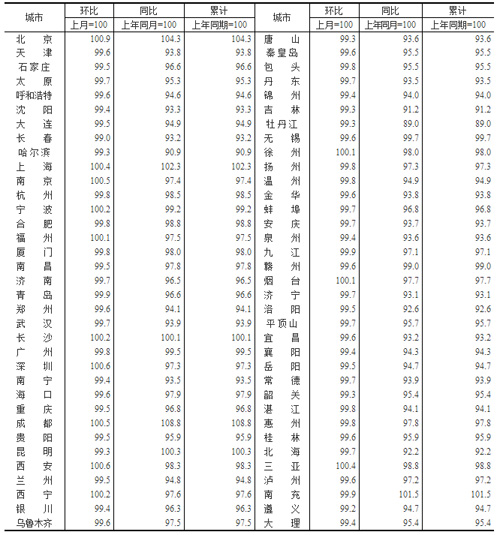 表1:2023年1月70個(gè)大中城市新建商品住宅銷售價(jià)格指數(shù)