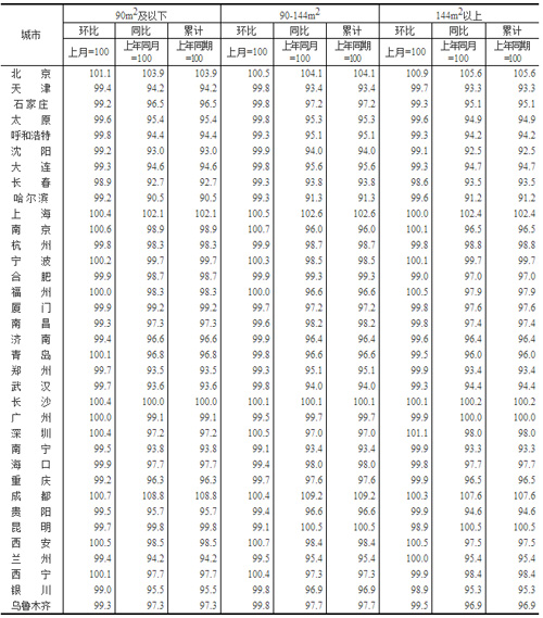 表3:2023年1月70個(gè)大中城市新建商品住宅銷售價(jià)格分類指數(shù)(一)