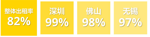 市場(chǎng)整體出租率82%,24個(gè)城市的出租率在80%以上,其中10個(gè)城市在90%以上。