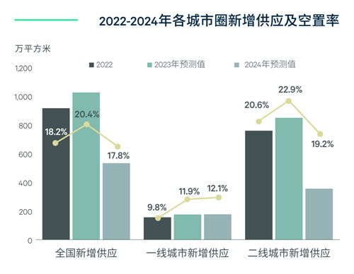 2023年一線(xiàn)都市圈整體新增供應(yīng)仍將充裕,但考慮到2024年供應(yīng)將大幅回落,我們建議租戶(hù)把握在核心區(qū)域內(nèi)布局拓展的機(jī)會(huì)。