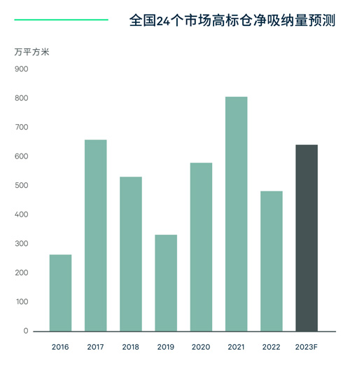 盡管2023年的出口增長(zhǎng)面臨壓力,但我們認(rèn)為由于此前影響物流活動(dòng)的諸多負(fù)面因素均將得以扭轉(zhuǎn),國(guó)內(nèi)消費(fèi)的周期性反彈將支撐倉(cāng)儲(chǔ)租賃市場(chǎng)的復(fù)蘇。此外,汽車(chē)等高端制造業(yè)的供應(yīng)鏈升級(jí)和外包所帶動(dòng)的高標(biāo)倉(cāng)需求也將持續(xù)釋放。CBRE預(yù)計(jì)全年國(guó)內(nèi)主要城市高標(biāo)倉(cāng)凈吸納量有望超過(guò)640萬(wàn)平方米,同比增長(zhǎng)30%。