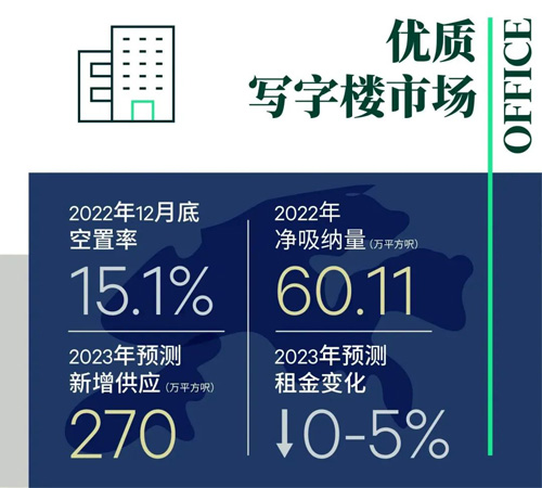 “2022年寫字樓市場的新租賃量減少,空置率創(chuàng)歷史新高。即使市場氣氛低迷,但我們留意到通關(guān)所帶動的潛在需求,特別是中資企業(yè)的需求回升,并將支持2023年的租賃活動。而由于全球經(jīng)濟不穩(wěn)及高融資成本,跨國公司將繼續(xù)對擴張計劃的成本開支保持審慎的態(tài)度。然而,企業(yè)的成本控制政策及不斷上升的空置數(shù)字造成租金下行壓力,此情況將持續(xù),直至需求強勁至足以扭轉(zhuǎn)為止。預計主要子市場的租金將進一步下降0%-5%。”