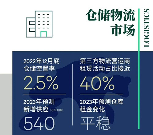 2022年租賃量增加,主要受政府公共部門需求推動。政府部門在不同地區(qū)租用140萬平方尺,以短期存放醫(yī)療物資,共占全年租賃總量的25%。強制搬遷仍然是2022年的一個主要現(xiàn)象。即使速度較慢,但仍涉及177,000平方尺的新租賃活動。持續(xù)的需求和強制搬遷要求確保倉庫空置率在2022年保持在2.5%的低水平。低空置率確保倉庫租金以2015年以來最快的速度攀升,2022年同比增長5.3%。