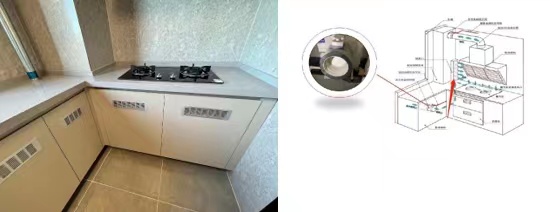 為降低廚房做飯帶來(lái)的"串味"問(wèn)題,項(xiàng)目在廚房設(shè)置可控型的風(fēng)閥,在開(kāi)啟抽油煙機(jī)的同時(shí)開(kāi)啟風(fēng)閥,將新鮮空氣引入室內(nèi)。避免有氣味、顆粒物等散發(fā)源中的污染物串通到室內(nèi),同時(shí)有效保障廚房的排風(fēng)要求,防止油煙擴(kuò)散到室內(nèi)其他空間。