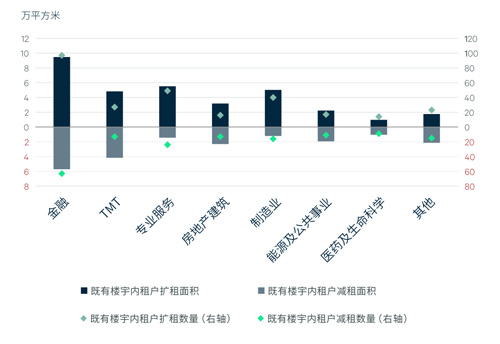 既有樓宇內(nèi)租戶擴(kuò)減面積規(guī)模(按行業(yè))
