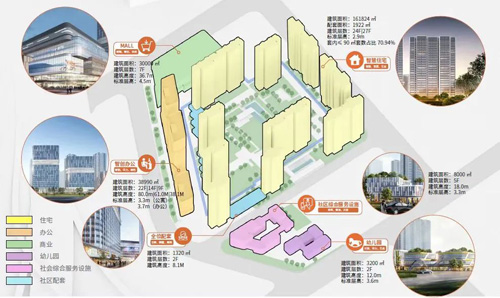 本項(xiàng)目包含業(yè)態(tài)種類豐富,合理的建筑布局有利于激發(fā)社區(qū)活力,形成多元互動(dòng)。項(xiàng)目將四合院、胡同坊巷的北京古都印記,以設(shè)計(jì)的手法演繹置入,承古啟新?倛D合理分區(qū),呈組團(tuán)布局,形成住宅組團(tuán)、商業(yè)辦公組團(tuán),以及幼教服務(wù)組團(tuán)。公服設(shè)施放置于西側(cè),沿五環(huán)形成連續(xù)城市界面,塑造城市公共界面形象及天際線。