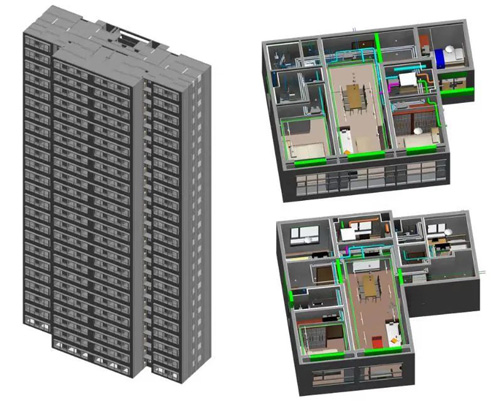 項(xiàng)目在規(guī)劃設(shè)計(jì)、施工建造和運(yùn)行維護(hù)全過(guò)程應(yīng)用BIM技術(shù)。主要應(yīng)用點(diǎn)包括建立場(chǎng)地模型、主體BIM模型、BIM機(jī)電管綜、裝配式應(yīng)用、機(jī)電深化復(fù)核、施工模擬、BIM技術(shù)交底、BIM輔助現(xiàn)場(chǎng)驗(yàn)收、BIM能源管理等。本項(xiàng)目BIM工作采取一模多用的原則,增加BIM工作效率,通過(guò)完整的BIM模型及其構(gòu)件信息進(jìn)行后續(xù)應(yīng)用處理。