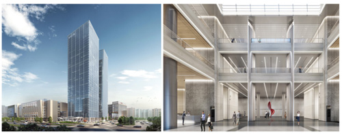活動(dòng)開(kāi)始前,與會(huì)代表及媒體一行前往信達(dá)中心國(guó)際超甲級(jí)雙塔寫(xiě)字樓進(jìn)行參觀。站在157.8米雙塔寫(xiě)字樓北塔32層,深入了解項(xiàng)目規(guī)劃、現(xiàn)場(chǎng)工程建設(shè)情況及租賃進(jìn)展。