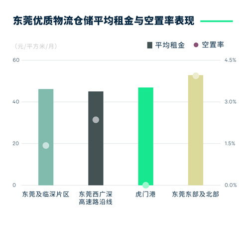 東莞高標(biāo)倉(cāng)市場(chǎng)在一季度錄得了一個(gè)新項(xiàng)目交付使用,為位于東莞西的20萬(wàn)平方米的普洛斯新沙物流園,新項(xiàng)目去化良好。與此同時(shí),存量項(xiàng)目也錄得了不俗的去化,帶動(dòng)整體市場(chǎng)空置率明顯改善,環(huán)比下降6.9個(gè)百分點(diǎn)至2.5%的市場(chǎng)低位。著眼需求,季內(nèi)需求主要來(lái)自第三方物流和制造業(yè),本季錄得日本某知名第三方物流公司在新入市項(xiàng)目中租賃了近4萬(wàn)平方米的優(yōu)質(zhì)倉(cāng)儲(chǔ)空間用于輻射深圳和東莞麻涌。整體市場(chǎng)平均租金在穩(wěn)定需求的帶動(dòng)下環(huán)比增長(zhǎng)1.0%至每月每平方米48.3元。