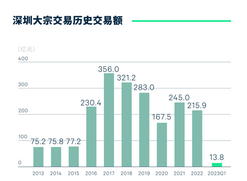 深圳大宗交易市場(chǎng)在一季度依然保持了一定的活躍度,共錄得10宗交易,交易總額共計(jì)人民幣13.8億元,成交物業(yè)類型多樣化,涵蓋工業(yè)、寫字樓和商業(yè)。雖然成交宗數(shù)較多,但成交總額環(huán)比及同比下降較為明顯,整體市場(chǎng)情緒仍在逐步修復(fù)中。