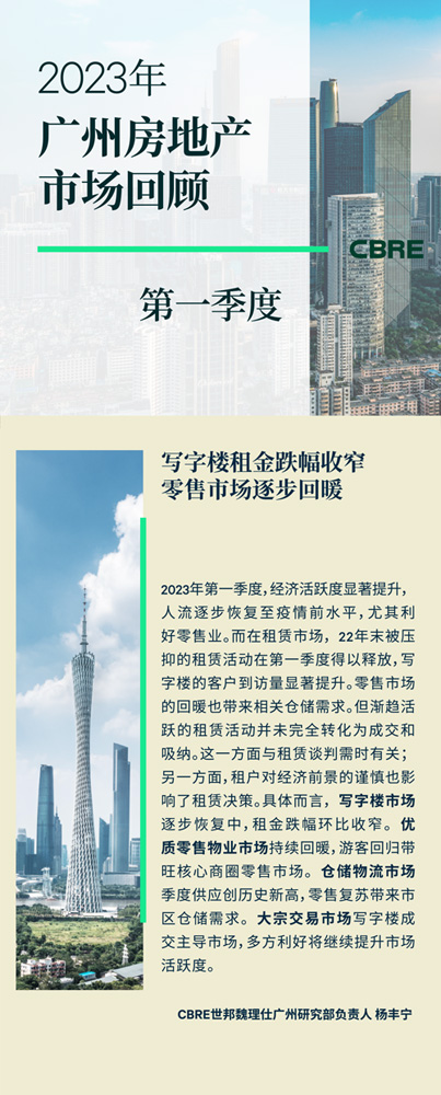 2023年首季,廣州零售市場(chǎng)受益于人流量的恢復(fù),呈穩(wěn)步復(fù)蘇態(tài)勢(shì)。春節(jié)后,廣州地鐵人流已接近疫情前水平,季內(nèi)共有四天的日線(xiàn)網(wǎng)客流量超千萬(wàn)人次。而根據(jù)廣州市統(tǒng)計(jì)局?jǐn)?shù)據(jù)顯示,1-2月廣州全市社會(huì)消費(fèi)品零售總額同比上漲2%,較2022年12月(同比下跌0.4%)有所回暖。其中,全市實(shí)現(xiàn)住宿和餐飲業(yè)零售額同比增長(zhǎng)11.0%。與此同時(shí),廣州政府還在三月發(fā)布了全國(guó)首部國(guó)際消費(fèi)中心城市培育建設(shè)專(zhuān)項(xiàng)規(guī)劃《廣州建設(shè)國(guó)際消費(fèi)中心城市發(fā)展規(guī)劃(2022-2025年)》,加速該項(xiàng)目的落地實(shí)施。并且,在季內(nèi),廣州再次派發(fā)旅游和餐飲消費(fèi)券,以提振消費(fèi)市場(chǎng)。