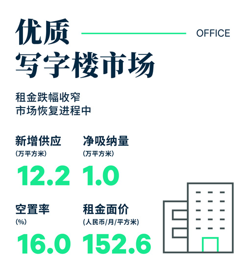 春節(jié)后,市場(chǎng)問(wèn)詢(xún)量、帶看量較年前大幅增加,商務(wù)活動(dòng)活躍度提升,但轉(zhuǎn)化為租賃成交仍需時(shí)日。目前寫(xiě)字樓用戶(hù)的動(dòng)態(tài)以續(xù)租或整合搬遷為主,降低成本仍然是企業(yè)考慮的重要因素,如某游戲公司從地標(biāo)項(xiàng)目搬遷到同區(qū)的乙級(jí)寫(xiě)字樓,某大型電信通訊類(lèi)企業(yè)從甲級(jí)寫(xiě)字樓退租、回到自用物業(yè)。季內(nèi)凈吸納量為1.0萬(wàn)平方米,環(huán)比減少90%。樓宇繼續(xù)采用租金優(yōu)惠來(lái)促進(jìn)去化,全市租金面價(jià)環(huán)比下降0.5%,至每月每平方米152.6元,租金跌幅環(huán)比收窄1.3個(gè)百分點(diǎn)。