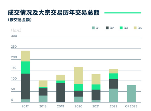 廣州第一季度共錄得五宗大宗物業(yè)成交,總成交金額近80億元人民幣,同比增長(zhǎng)25%,并超過(guò)了2022年全年總成交金額的50%。超過(guò)九成的成交金額來(lái)自四宗寫(xiě)字樓成交,分布在各區(qū),賣(mài)家類(lèi)型均為房地產(chǎn)企業(yè)。其中科學(xué)城的爛尾項(xiàng)目由國(guó)企以13.1億元的底價(jià)拍得;琶洲的整棟寫(xiě)字樓也被國(guó)企購(gòu)入;廣州國(guó)際金融城和魚(yú)珠物業(yè)的買(mǎi)方則是以自用為主要需求的企業(yè)買(mǎi)家。最后,本季度錄得一宗位于番禺區(qū)的養(yǎng)老社區(qū)成交,成交金額比2020年的關(guān)聯(lián)交易增長(zhǎng)了42%。