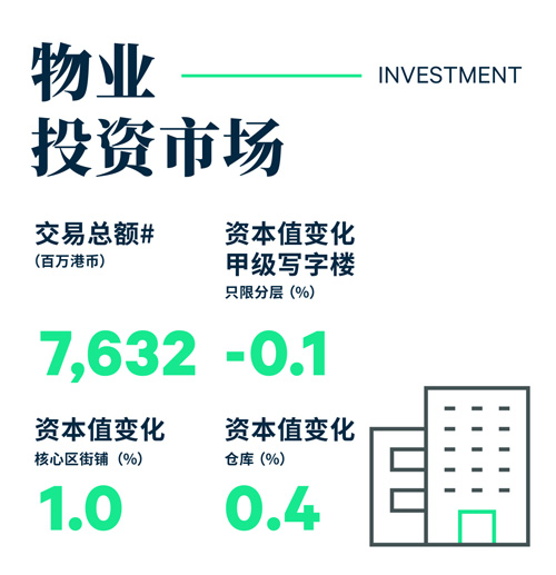2023年第一季度商業(yè)地產(chǎn)投資額(交易金額超過(guò)7,700萬(wàn)港元,不包括純土地或相關(guān)交易)按年下跌43%至76億港元,為2020年第四季度以來(lái)交易額最低的季度。本季只有兩宗交易成交額達(dá)10億港元或以上。零售物業(yè)交易占本季投資額一半以上,自2020年第四季度以來(lái)首次出現(xiàn)。