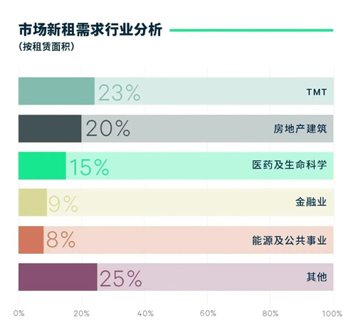 市場(chǎng)逐步回暖,行業(yè)煥活為寫(xiě)字樓市場(chǎng)注入動(dòng)能。本季度市場(chǎng)新增需求主要來(lái)自科技互聯(lián)網(wǎng)(23.2%)、房地產(chǎn)建筑(19.6%)與醫(yī)藥及生命科學(xué)(15.0%)?萍蓟ヂ(lián)網(wǎng)中以在線教育類平臺(tái)互聯(lián)網(wǎng)的新設(shè)立需求為主。教育行業(yè)在繼十八大報(bào)告中“鼓勵(lì)引導(dǎo)社會(huì)力量舉辦教育”及去年年底多條政策的相繼出臺(tái)迎來(lái)利好。季內(nèi),西安寫(xiě)字樓市場(chǎng)錄得來(lái)自非盈利性質(zhì)及在線職業(yè)、素質(zhì)教育等線上教育機(jī)構(gòu)近12,500平方米的新租需求。來(lái)自建筑工程類企業(yè)的辦公需求仍主導(dǎo)房地產(chǎn)建筑行業(yè)新增需求。其中,高新二期吸納了超過(guò)60%的新設(shè)立及升級(jí)需求。2023年作為“四個(gè)高新”跨越年實(shí)施“四個(gè)高新”重點(diǎn)項(xiàng)目598個(gè),總投資10,930億元。建設(shè)規(guī)模的擴(kuò)大使高新二期持續(xù)承接建筑工程類企業(yè)的升級(jí)搬遷需求。同時(shí),作為“雙中心”主要承載區(qū),隨著未來(lái)“未來(lái)之瞳”及“絲路科學(xué)城”等重點(diǎn)項(xiàng)目建設(shè)的提速,此類租戶的升級(jí)擴(kuò)租趨勢(shì)將有所延續(xù)。季內(nèi)醫(yī)藥及生命科學(xué)行業(yè)在本地藥企的換租、升級(jí)需求拉動(dòng)下放量明顯,占比有所攀升。