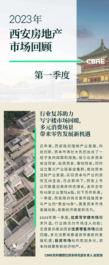 市場(chǎng)逐步回暖,行業(yè)煥活為寫(xiě)字樓市場(chǎng)注入動(dòng)能。本季度市場(chǎng)新增需求主要來(lái)自科技互聯(lián)網(wǎng)(23.2%)、房地產(chǎn)建筑(19.6%)與醫(yī)藥及生命科學(xué)(15.0%)?萍蓟ヂ(lián)網(wǎng)中以在線教育類(lèi)平臺(tái)互聯(lián)網(wǎng)的新設(shè)立需求為主。教育行業(yè)在繼十八大報(bào)告中“鼓勵(lì)引導(dǎo)社會(huì)力量舉辦教育”及去年年底多條政策的相繼出臺(tái)迎來(lái)利好。季內(nèi),西安寫(xiě)字樓市場(chǎng)錄得來(lái)自非盈利性質(zhì)及在線職業(yè)、素質(zhì)教育等線上教育機(jī)構(gòu)近12,500平方米的新租需求。來(lái)自建筑工程類(lèi)企業(yè)的辦公需求仍主導(dǎo)房地產(chǎn)建筑行業(yè)新增需求。其中,高新二期吸納了超過(guò)60%的新設(shè)立及升級(jí)需求。2023年作為“四個(gè)高新”跨越年實(shí)施“四個(gè)高新”重點(diǎn)項(xiàng)目598個(gè),總投資10,930億元。建設(shè)規(guī)模的擴(kuò)大使高新二期持續(xù)承接建筑工程類(lèi)企業(yè)的升級(jí)搬遷需求。同時(shí),作為“雙中心”主要承載區(qū),隨著未來(lái)“未來(lái)之瞳”及“絲路科學(xué)城”等重點(diǎn)項(xiàng)目建設(shè)的提速,此類(lèi)租戶的升級(jí)擴(kuò)租趨勢(shì)將有所延續(xù)。季內(nèi)醫(yī)藥及生命科學(xué)行業(yè)在本地藥企的換租、升級(jí)需求拉動(dòng)下放量明顯,占比有所攀升。
