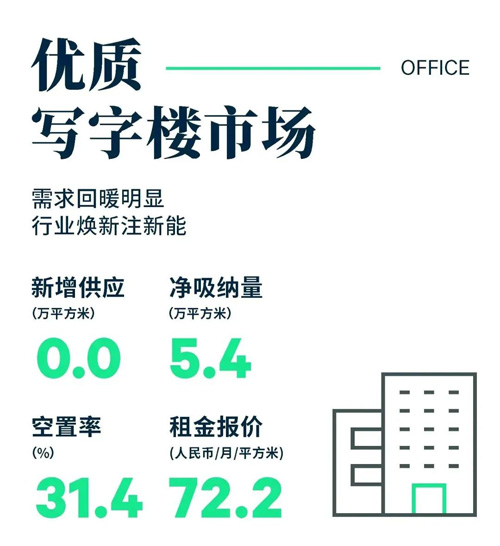 2023年第一季度,西安優(yōu)質(zhì)寫(xiě)字樓市場(chǎng)未錄得新增供應(yīng)入市,受個(gè)別乙級(jí)樓宇傾向整租及部分業(yè)主資金問(wèn)題仍未緩解影響,年內(nèi)新增供應(yīng)將集中在下半年入市。優(yōu)質(zhì)寫(xiě)字樓市場(chǎng)總量仍保持在692.3萬(wàn)平方米。其中甲級(jí)辦公樓體量為174萬(wàn)平方米。寫(xiě)字樓市場(chǎng)租賃情緒有所改善,市場(chǎng)需求明顯回暖。季內(nèi),西安寫(xiě)字樓市場(chǎng)凈吸納量環(huán)比上升67%,至5.4萬(wàn)平方米,較去年同期亦上升3%。市場(chǎng)空置率重回下行通道,下降0.8個(gè)百分點(diǎn),至31.4%。租金方面,小業(yè)主的持續(xù)降租導(dǎo)致整體市場(chǎng)可比租金環(huán)比下降1.3%,甲級(jí)寫(xiě)字樓租金雖仍處下行通道,但隨著帶看量,問(wèn)詢量及成交的增加,更多業(yè)主態(tài)度有所轉(zhuǎn)變,故甲級(jí)寫(xiě)字樓降幅收窄,環(huán)比微降0.3%。