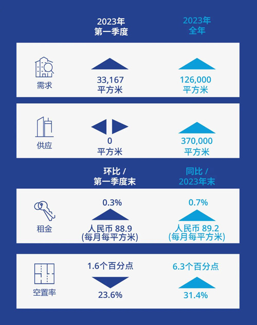 2023年西安第一季度部分核心子市場供需關(guān)系出現(xiàn)錯(cuò)位現(xiàn)象,存量空置房源分布較為分散,與大面積客戶需求匹配度較低。預(yù)計(jì)第二季度,曲江、港務(wù)及浐灞子市場將迎來新項(xiàng)目入市,推動市場總存量進(jìn)一步提升,優(yōu)化部分供需結(jié)構(gòu),也將加劇市場競爭。